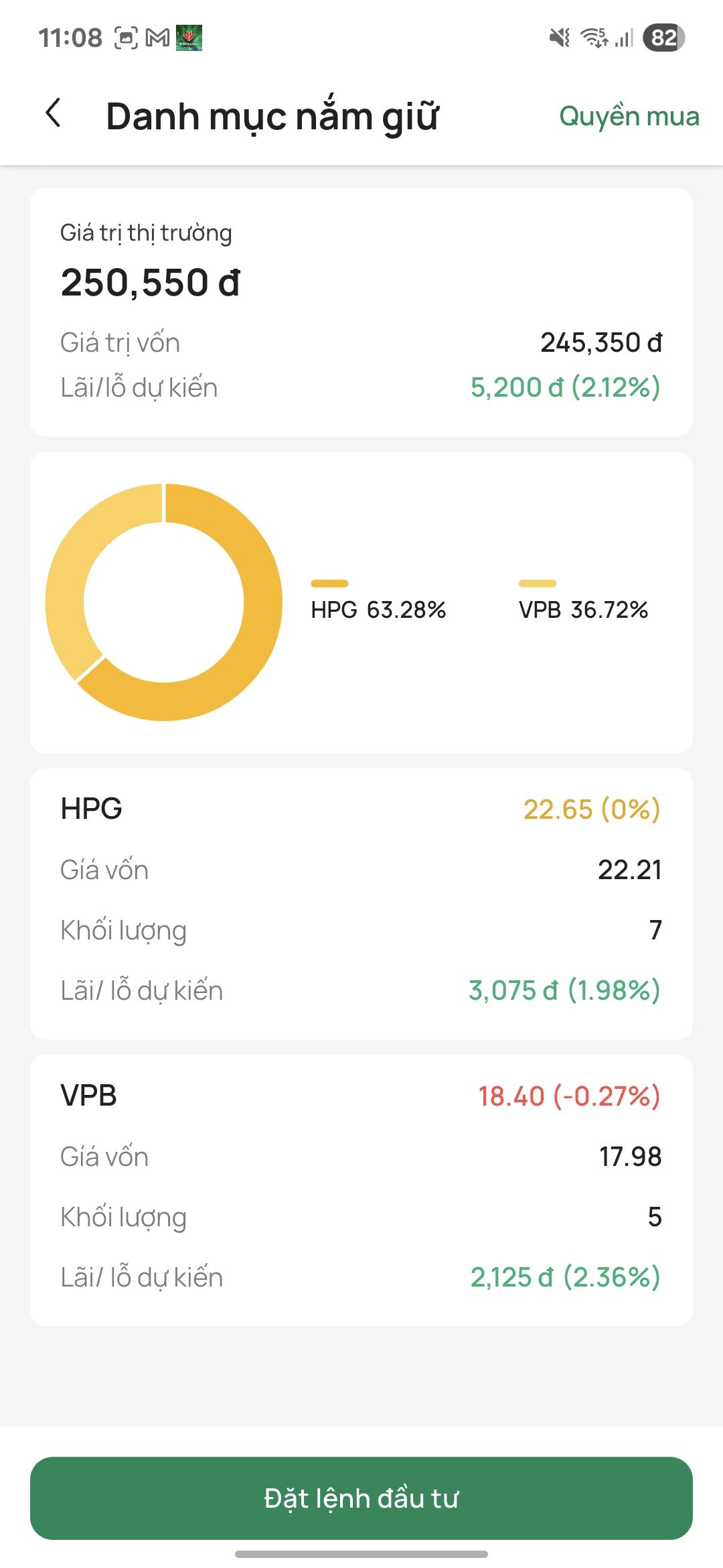Nhấn đ**ặt lệnh đầu tư** để đặt lệnh cho các cổ phiếu đang phân bổ theo kế hoạch