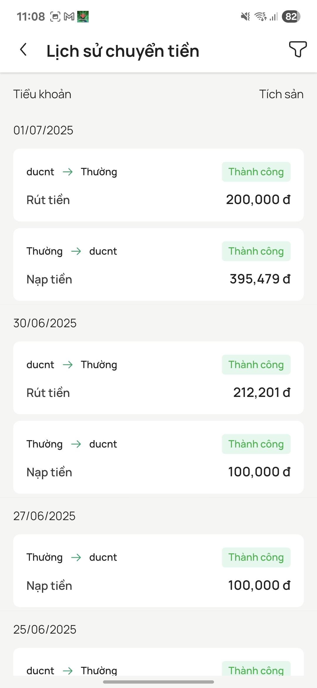 Nhấn **lịch sử chuyển tiền** để truy cập tính năng